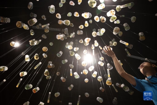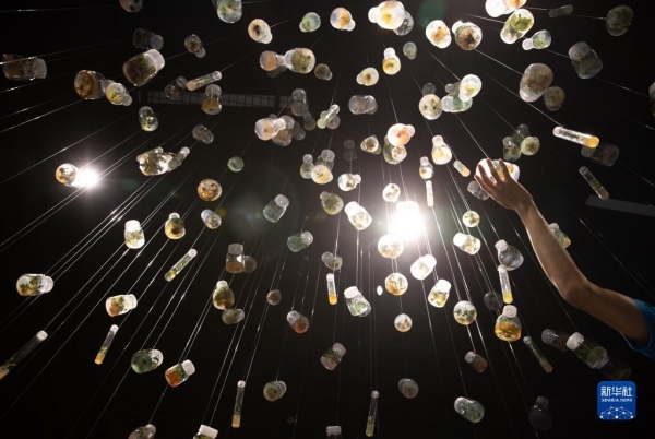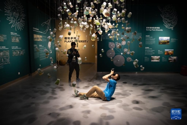 10月10日,在舉行發布會的中科院生物多樣性成果展現場,觀眾參觀由種子發育而來的多樣性植物樣品。