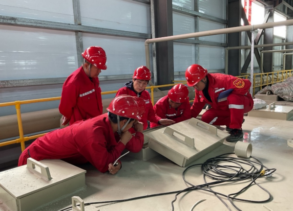 中國科學院青海鹽湖研究所科研人員對萃取車間技術員進行現場工藝培訓。(中國科學院青海鹽湖研究所供圖)