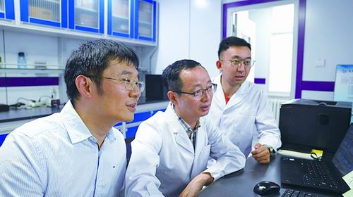 地質地球所科研團隊觀看檢測結果。地質地球所供圖