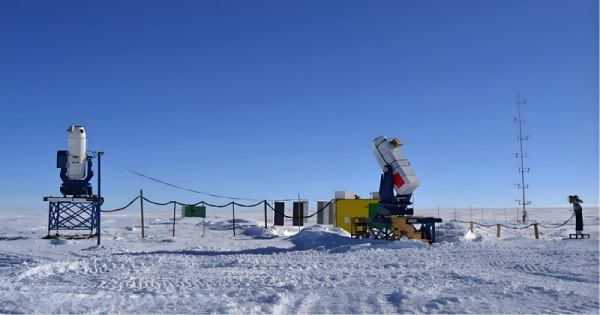 2015年于南極冰穹A拍攝的我國一系列南極天文望遠鏡。(受訪者供圖)