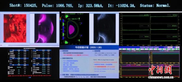EAST億度千秒高約束模式等離子體運(yùn)行世界紀(jì)錄屏幕截屏。中國(guó)科學(xué)院合肥物質(zhì)科學(xué)研究院 供圖