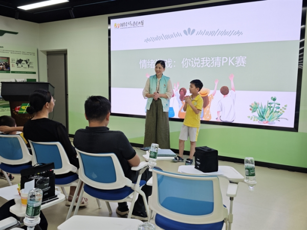 講座特邀國家二級心理咨詢師、情緒療愈導師花開擔任主講,采用互動體驗式教學。通過趣味游戲、情景模擬、親子情緒涂鴉等方式拉近親子距離,幫助參與者認識情緒表達的多樣性,強調因材施教的重要性,教授親子溝通中的情緒管理技巧。