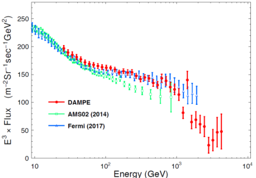 中國(guó)科學(xué)院紫金山天文臺(tái)常進(jìn)科研團(tuán)隊(duì)在中國(guó)科學(xué)院空間科學(xué)戰(zhàn)略性先導(dǎo)科技專項(xiàng)支持下,利用暗物質(zhì)粒子探測(cè)衛(wèi)星“悟空”采集到的約150萬顆25GeV以上的電子宇宙射線數(shù)據(jù),獲得了世界上迄今最精確高能電子宇宙線能譜,首次直接測(cè)量到電子宇宙射線能譜在~1 TeV處的拐折,初步顯示在~1.4 TeV處存在能譜精細(xì)結(jié)構(gòu),一旦該精細(xì)結(jié)構(gòu)得以確證,將是粒子物理或天體物理領(lǐng)域開創(chuàng)性發(fā)現(xiàn)。相關(guān)成果于2017年11月30日在《自然》雜志在線發(fā)表。