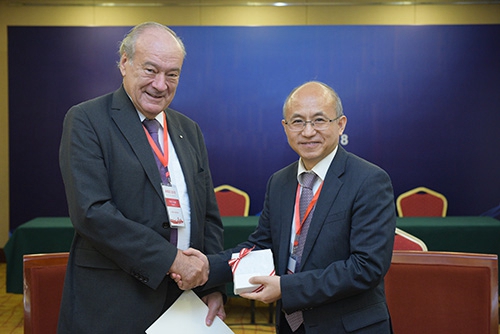 張亞平代表中科院院長白春禮歡迎昂格來華出席第二屆“一帶一路”科技創(chuàng)新國際研討會(huì),并簡(jiǎn)要介紹了中科院在科研、教育和國際合作等方面的情況。他非常高興得知中科院科技戰(zhàn)略咨詢研究院代表團(tuán)出席了歐洲科學(xué)與藝術(shù)院主辦的多瑙河科學(xué)院大會(huì),并推動(dòng)多瑙河地區(qū)與“一帶一路”倡議對(duì)接,關(guān)注多瑙河地區(qū)的發(fā)展規(guī)劃,展開長期性的戰(zhàn)略合作。他還對(duì)中國科學(xué)院大學(xué)與歐洲科學(xué)與藝術(shù)院資助的“歐洲母校”大學(xué)開展合作表示歡迎,認(rèn)為雙方可以開展聯(lián)合培養(yǎng)研究生以及夏令營等活動(dòng)。