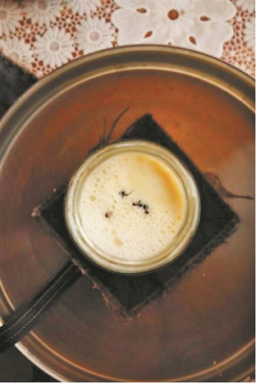 按照保加利亞傳統(tǒng)的酸奶制作方法,科學(xué)家將4只活螞蟻放入一罐溫牛奶中。圖片來源:丹麥技術(shù)大學(xué)