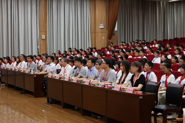 開(kāi)營(yíng)儀式上,中國(guó)科學(xué)院院士蒲慕明等向夏令營(yíng)學(xué)生代表授營(yíng)旗,腦智卓越中心副主任(主持工作)師詠勇致辭。