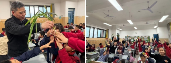 課堂上,亞熱帶生態(tài)所高級工程師侯海軍以“奇妙的植物王國”為題,從植物根、莖、葉的功能,到植物從種子到開花的過程,以及光照、水分、土壤等影響植物生長的重要因素,揭開了植物世界的面紗。通過近距離觀察植物標本、參與趣味問答等環(huán)節(jié),同學們踴躍互動。