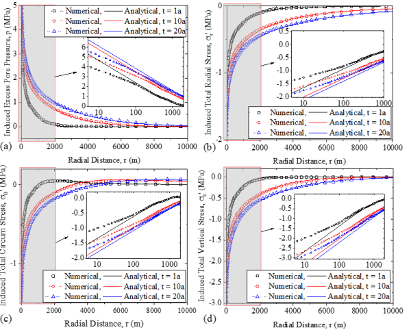 滲流—力學全耦合瞬態(tài)一維徑向解析解與數(shù)值解對比