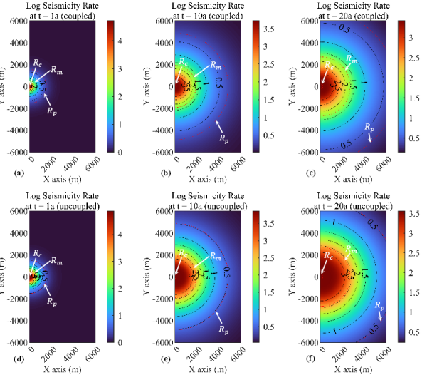 團隊進一步通過速率—狀態(tài)摩擦定律,建立了場地地震活動率與庫侖應力變化之間的關聯(lián),提出了CO2注入應力擾動范圍的新估算公式,并結合隨機斷層分布模型與古登堡—里克特定律,實現(xiàn)了震級—超越概率曲線的高效計算,最終構建了一套CO2封存誘發(fā)地震風險預測新框架。