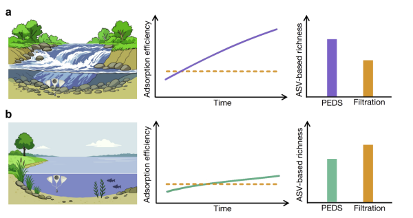 環(huán)境DNA(eDNA)技術(shù)因其非侵入性和高靈敏度,被認(rèn)為是未來水生生物多樣性監(jiān)測(cè)的重要工具。然而,傳統(tǒng)的主動(dòng)過濾方法在渾濁水體和高流速環(huán)境中效率較低,制約了eDNA在河流等動(dòng)態(tài)生態(tài)系統(tǒng)中的應(yīng)用。近年來,被動(dòng)式環(huán)境DNA采樣器作為一種新興替代方案逐漸受到關(guān)注。但在不同水動(dòng)力條件下,被動(dòng)采樣能否穩(wěn)定、有效地反映生物群落結(jié)構(gòu),其作用機(jī)制仍缺乏系統(tǒng)量化。