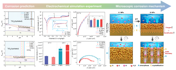 深海極端服役環境對裝備結構材料耐蝕性要求頗高。鈦及鈦合金憑借優異的耐蝕性,成為深海探測、油氣開發等裝備的關鍵結構材料。現有研究聚焦鈦表面鈍化膜結構損傷引發的宏觀性能退化,但對靜水壓力環境下鈍化膜從原子尺度到宏觀尺度的演化規律缺乏認識,微觀機制與宏觀規律之間的關聯尚未建立,制約深海鈦合金精準設計與防護優化。