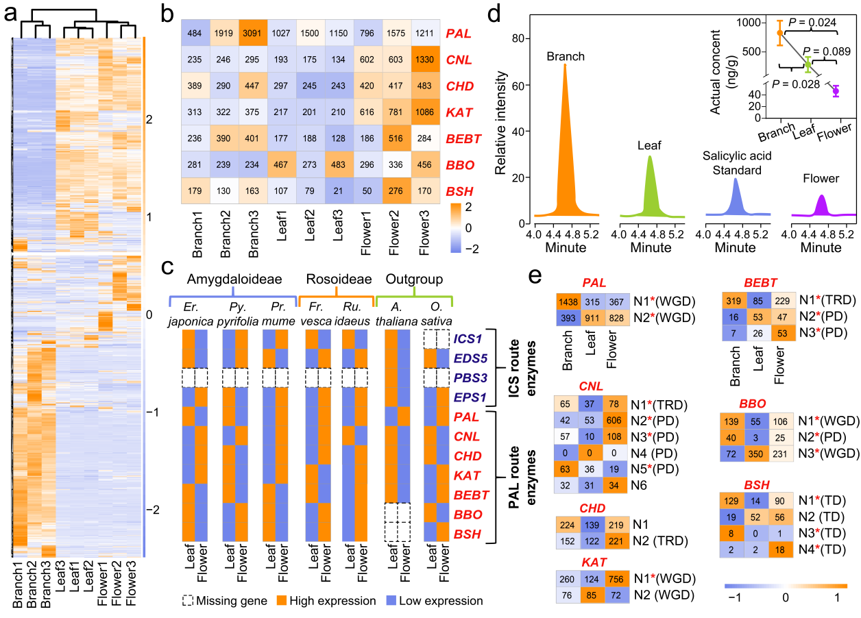 薔薇科物種全基因組表達模式及SA生物合成通路相關(guān)酶譜分析