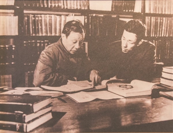 圖為1962年10月王大珩(左)與學生蔣筑英在一起討論問題。視覺中國供圖