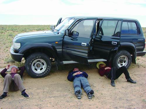 下一個野生動物觀測的好時機是傍晚7點。接近六七個小時的“午休”,在沒有遮蔽物的野外,氣溫接近40℃,悶得人喘不上氣?!八緳C師傅把一塊帆布鋪到車底,讓我們頭對頭鉆進去,上半身藏在車底,開始睡覺。”楊維康說,有時候風沙吹進耳朵,有時候螞蟻爬到臉上,他們都不為所動,“偶爾大家也會坐一起聊聊天,討論學生實驗、論文難題來打發時間”。