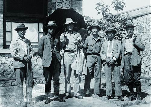 1934年5月,裴文中、李四光、德日進、卞美年、楊鐘健、巴爾博(從左至右)在北京周口店辦事處的院子里。