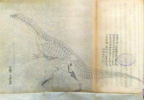 楊鐘健手繪的“許氏祿豐龍”化石骨架重建圖。