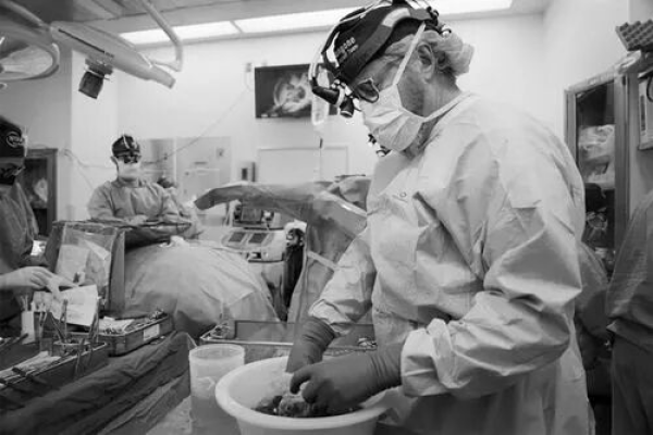 2023年7月,Robert Montgomery在紐約準備將豬腎移植到一名腦死亡男子體內。圖源:Shelby Lum