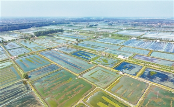 圖為位于江蘇省宿遷市泗洪縣龍集鎮(zhèn)的萬畝稻魚綜合種養(yǎng)示范基地。 視覺中國供圖