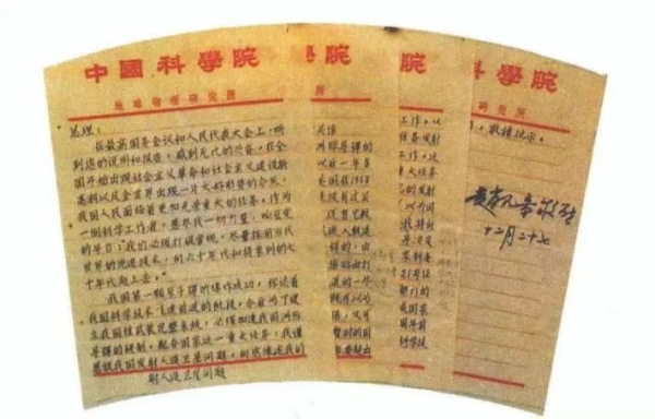 趙九章于1964年12月27日給周恩來總理的關于中國研制人造衛星建議的信。