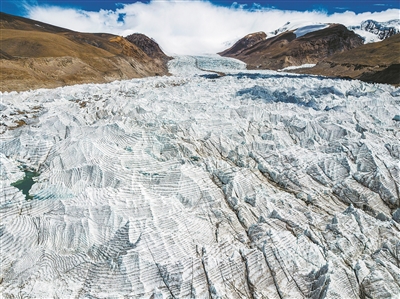 位于西藏自治區(qū)山南市浪卡子縣境內(nèi)的措嘉冰川。 新華社記者 姜帆攝